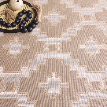 Elevate your space with the timeless charm of our Aspect 452 Area Rug. Crafted on a power loom with meticulous care in Turkey, this small rectangle rug showcases a harmonious blend of 50% cotton, 47% jute, and 3% polyester, promising enduring quality and comfort. At 1/4" pile height, it comfortably fits under doorways and furniture. The natural fibers offer an earthy aesthetic, while the OEKO-TEX certification ensures it's free from harmful substances. The visual appeal of the geometric diamond pattern in soothing natural tones will complement any interior with its subtle elegance. Add a touch of natural fiber style to your home with this beautifully constructed piece.