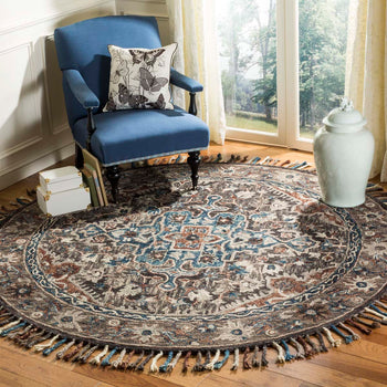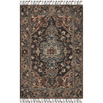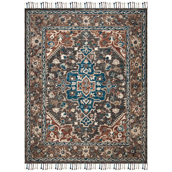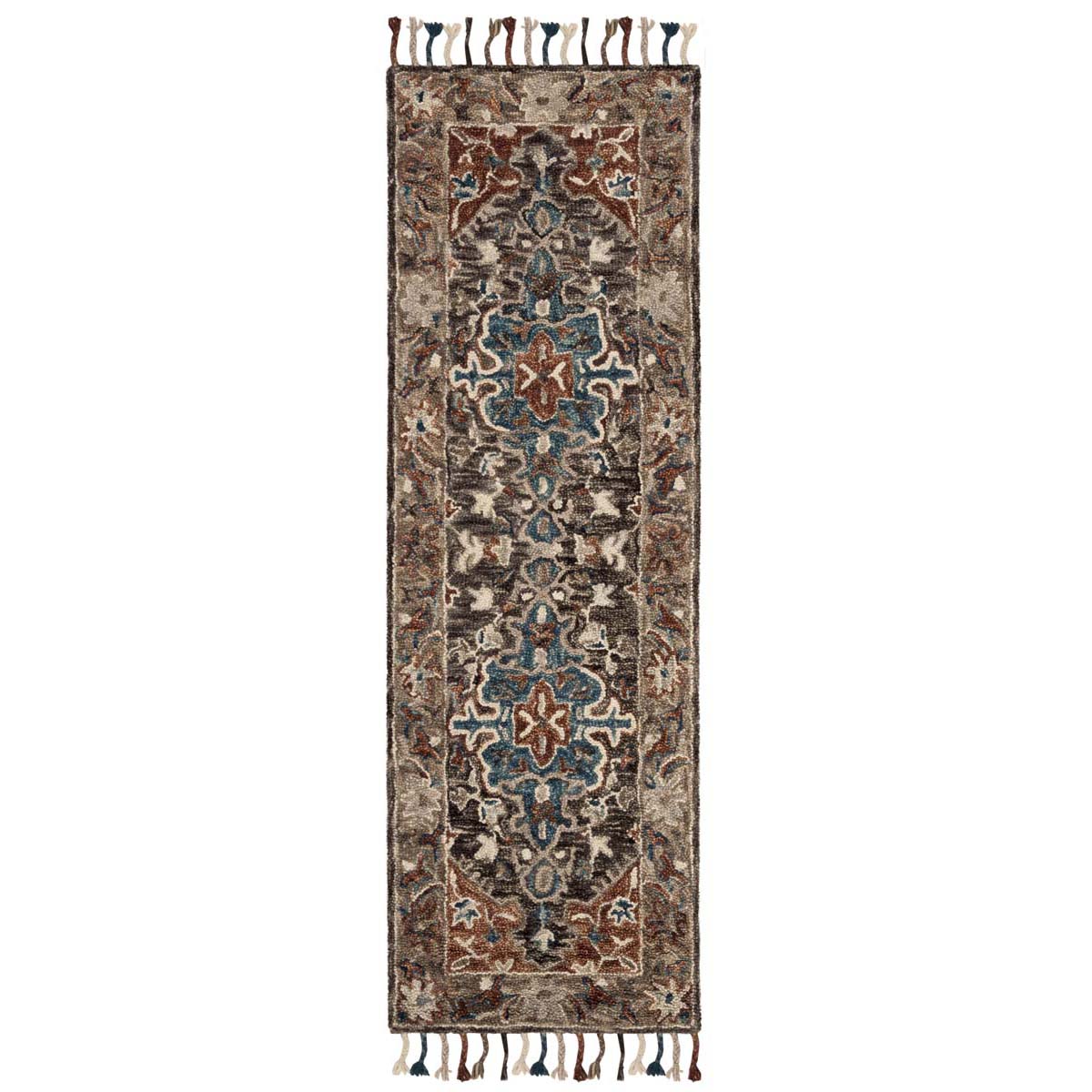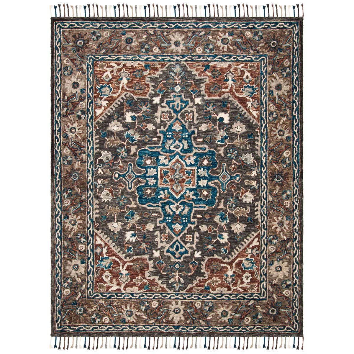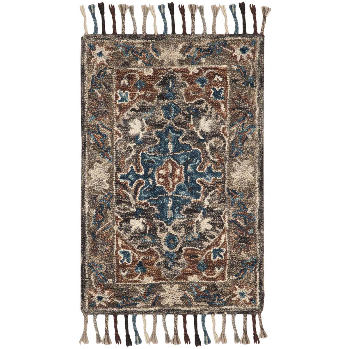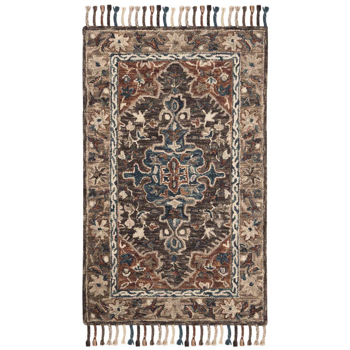 Elevate your space with the timeless elegance of our hand-tufted wool accent rug. Crafted with care in India, this piece measures 2 feet 3 inches by 5 feet and features a plush 1/4 inch pile height for underfoot comfort. The charcoal and light brown color palette exudes sophistication, while the intricate pattern speaks to a storied history. A perfect blend of traditional style and modern craftsmanship, this rug boasts a central medallion surrounded by florals and vine scrolls, framed by a complementary border. Tassel fringe details add a touch of whimsy. This rug promises to be a beautiful and durable addition to your home.