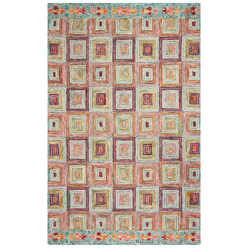 Enhance your living space with the vibrant charm of our hand-tufted wool accent rug. Sized at a versatile 2' X 3', this piece is a perfect addition to any room seeking a touch of Bohemian style. Crafted by skilled artisans in India, it boasts a comfortable 3/8" pile height. The rug showcases a harmonious blend of pink and gold hues, interwoven with other complementary colors to create an inviting palette.