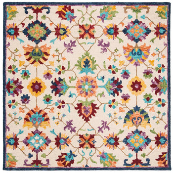 Introducing our exquisitely handcrafted 3' X 3' round area rug, a testament to traditional artisanship and luxurious comfort. Artfully designed in India, this rug showcases a rich blend of ivory and blue hues, complementing a variety of interiors with its timeless elegance.