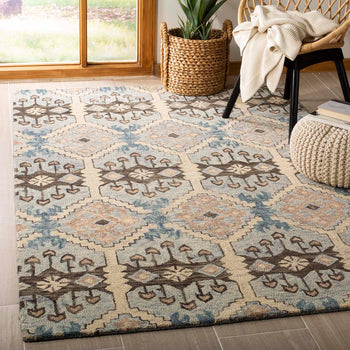 Introducing our exquisite Hand Tufted Wool Area Rug, a piece of timeless elegance crafted with exceptional attention to detail. This stunning rug comes in a versatile and serene palette of light blue and cream, enhancing its visual appeal and seamlessly integrating into your existing decor.