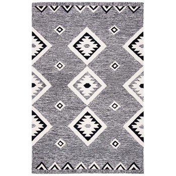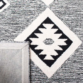 Embrace the eclectic charm of the Bohemian Black/Ivory Accent Rug, meticulously hand-tufted in India to perfection. Sized at an adaptable 2'-3" X 4' with a comfortable pile height of 3/8", this wool rug marries traditional craftsmanship with modern design.