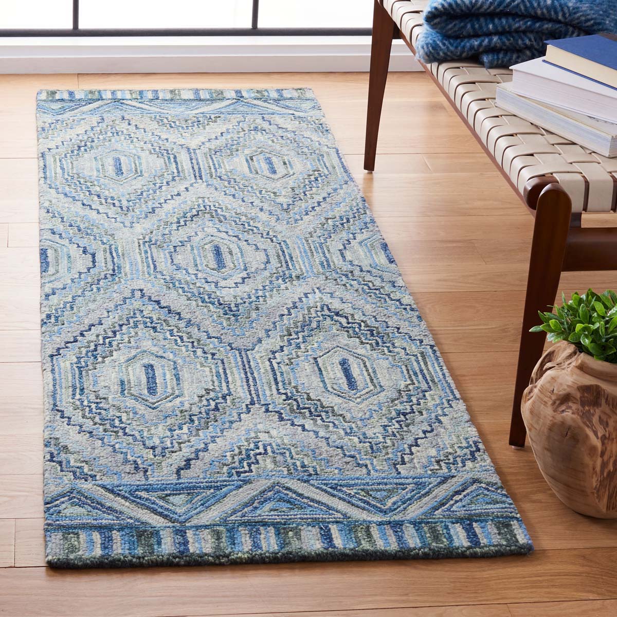 Discover artisanal charm and a fusion of modern designs with our grey and blue hand-tufted wool runner. Made in India with the utmost attention to detail, each runner is crafted with the traditional hand-tufted technique, ensuring a dense pile that's both comfortable underfoot and durable.