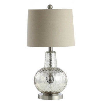 This stunning contemporary table lamp radiates beauty. Designed with mercury glass, its hammered texture instantly upgrades any room with its modern luxurious style. Often used in by designers in pairs to frame a sofa. This table lamp comes with a built-in USB port to keep your devices charged at all times.