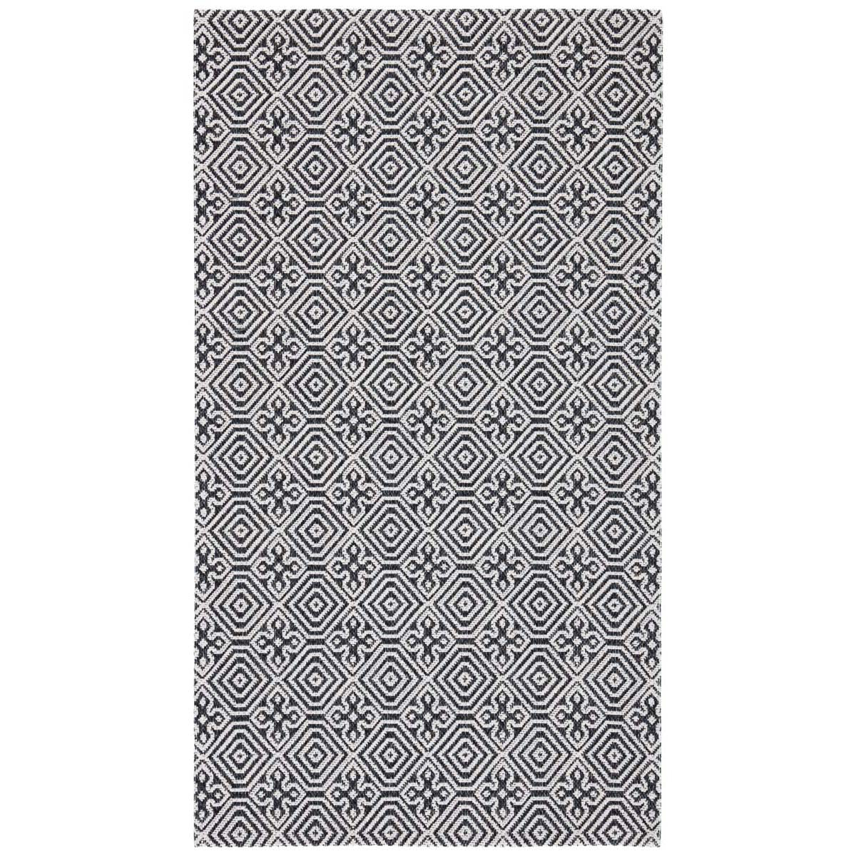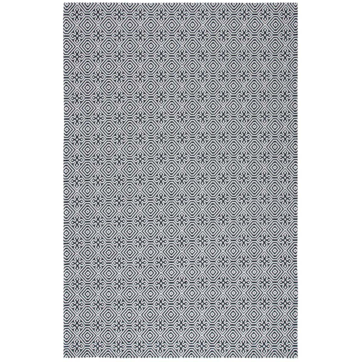 The dynamic black and light grey color palette is artfully woven into an eye-catching, symmetric pattern that seamlessly blends traditional charm with contemporary finesse. The contrasting hues and intricate motif create a captivating visual that will anchor your space and draw the eye.