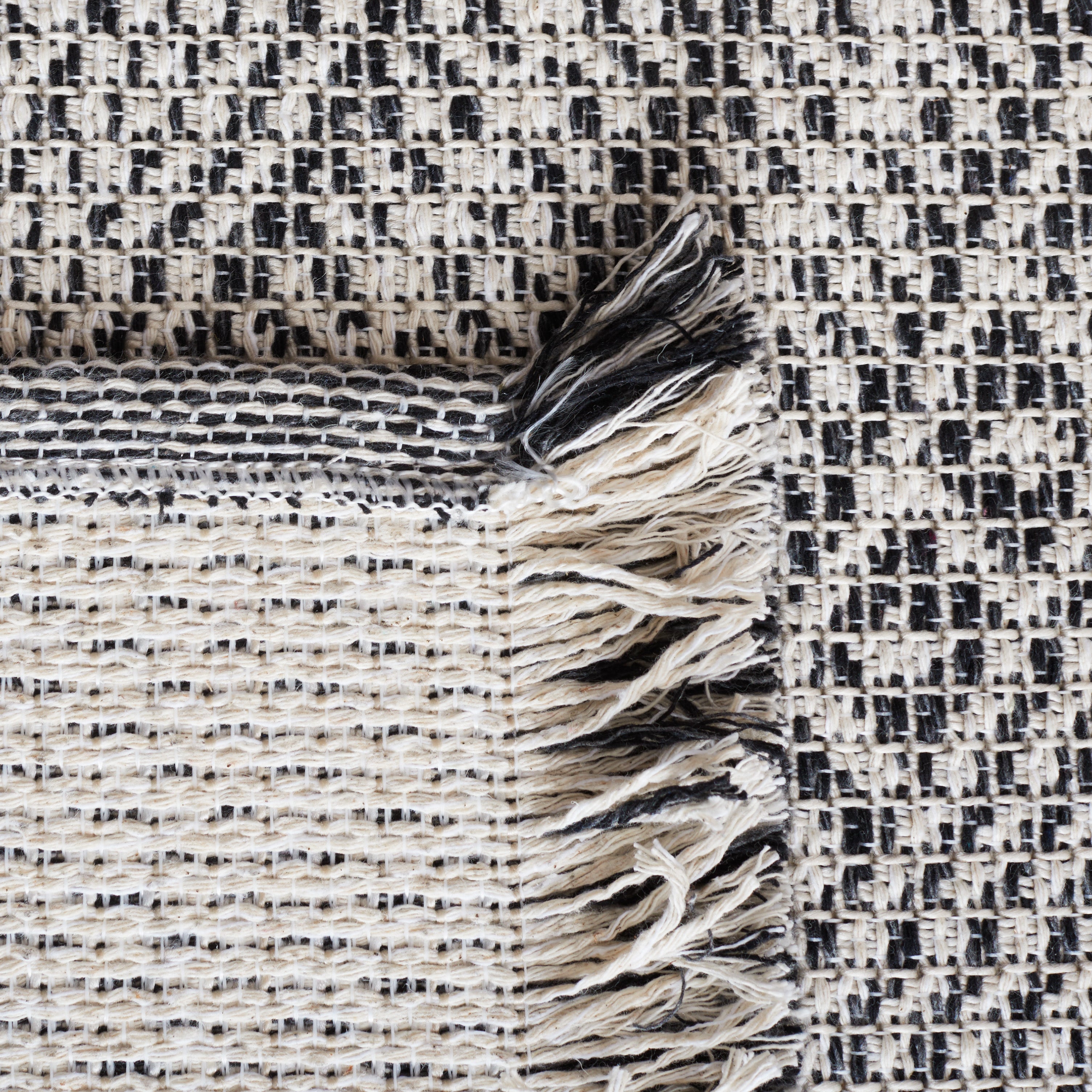 Embrace timeless charm with this exquisite 4' X 6' small rectangle area rug, perfect for adding a touch of elegance to any room. The classic ivory and black color palette is versatile and sophisticated, effortlessly complementing your home decor. Crafted in Turkey using power-loomed construction, this rug features a durable blend of 70% cotton, 17% polypropylene, and 13% polyester, ensuring both comfort and longevity.