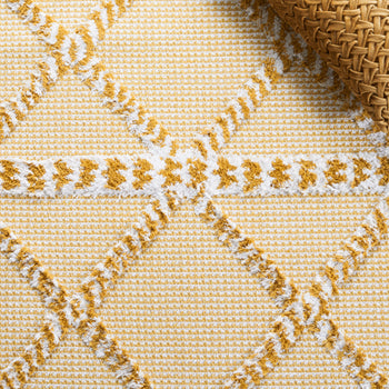 Elevate your space with our exquisite 2' x 9' Gold/Ivory Runner Rug, crafted in Turkey using advanced Power Loomed techniques. This beautiful runner boasts a luxurious 5/8" pile height and is made from a sustainable blend of 92% Recycled Cotton and 8% Polyester. Its intricate pattern interweaves timeless motifs, offering elegance and sophistication. OEKO-TEX certified for sustainability and safety, this runner is an eco-friendly and stylish addition to any hallway or narrow space seeking a touch of opulence.