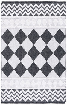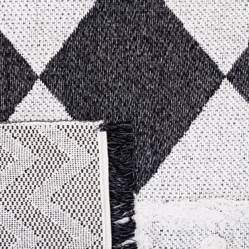 Elevate your space with this exquisite 2' x 9' Ivory/Black Runner Rug. Crafted in Turkey using power-loomed technology, this runner boasts a plush 5/8" pile height for a luxurious underfoot feel. The rug features a chic geometric diamond pattern with contrasting chevron details, adding a sophisticated touch to any hallway or long space. Made of an eco-conscious blend of 92% recycled cotton and 8% polyester, this runner is not only stylish but also environmentally friendly. OEKO-TEX certification assures that the rug is free from harmful substances, making it a safe choice for your home. Bring a piece of modern elegance and sustainable craftsmanship to your floors with this must-have runner.