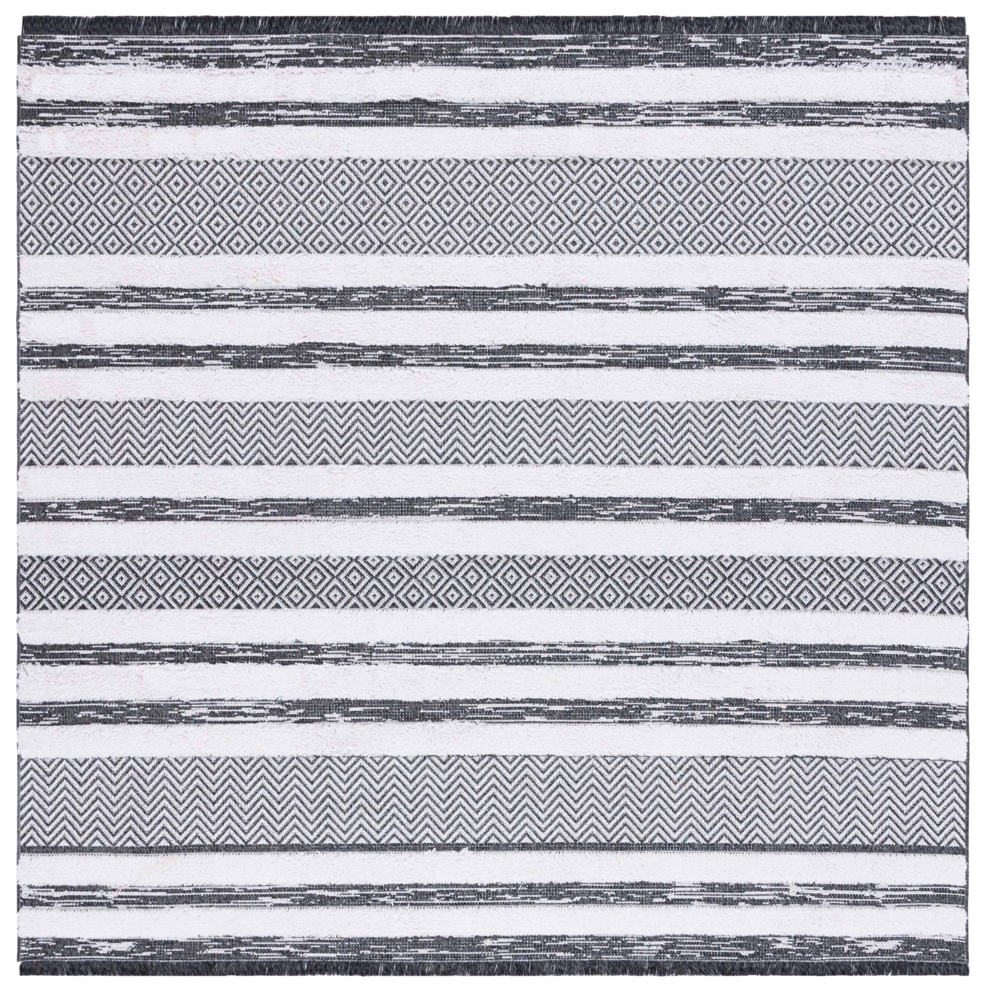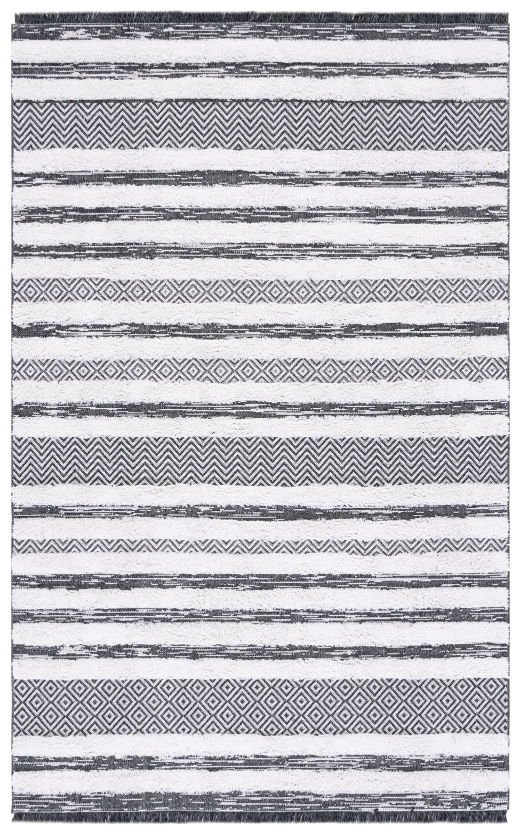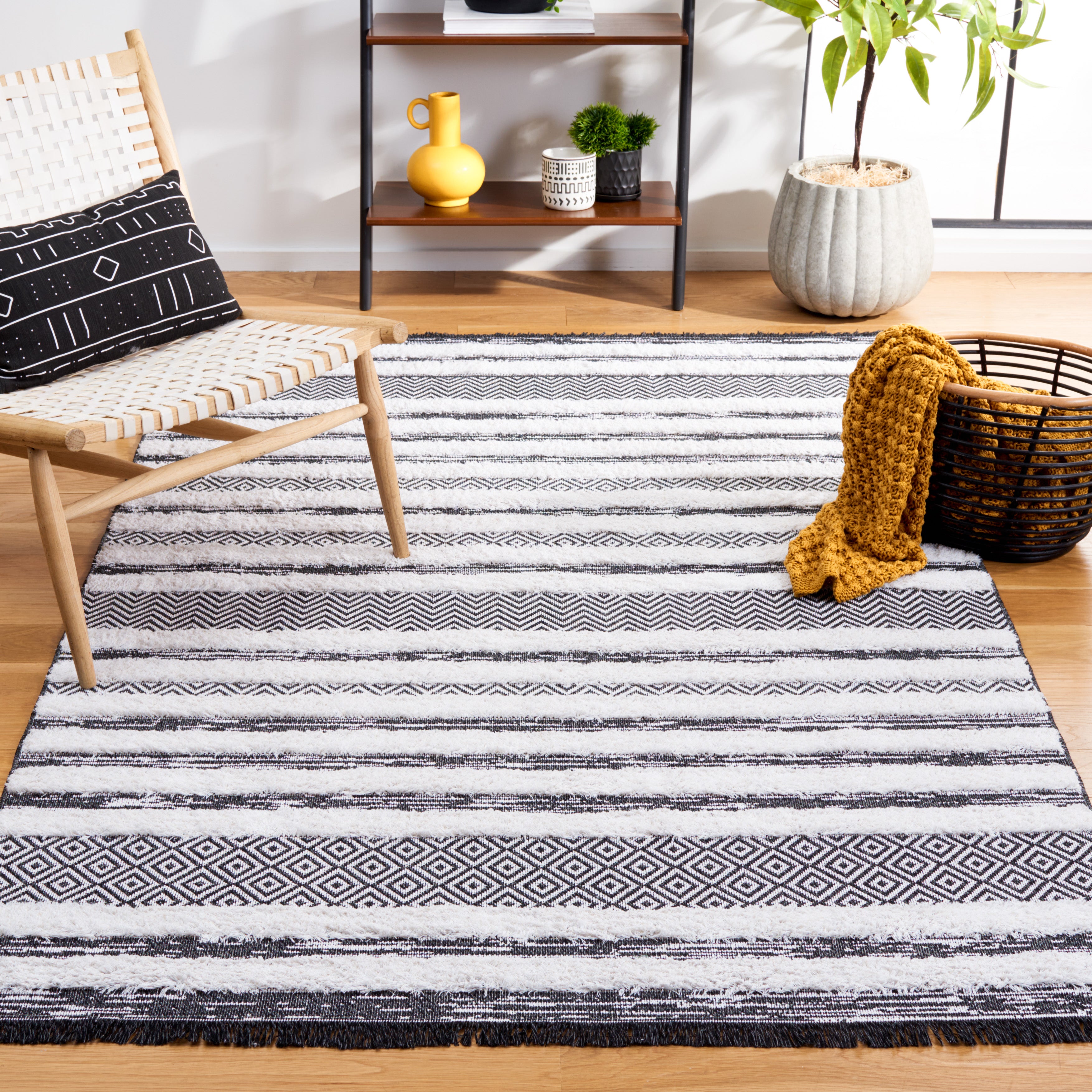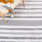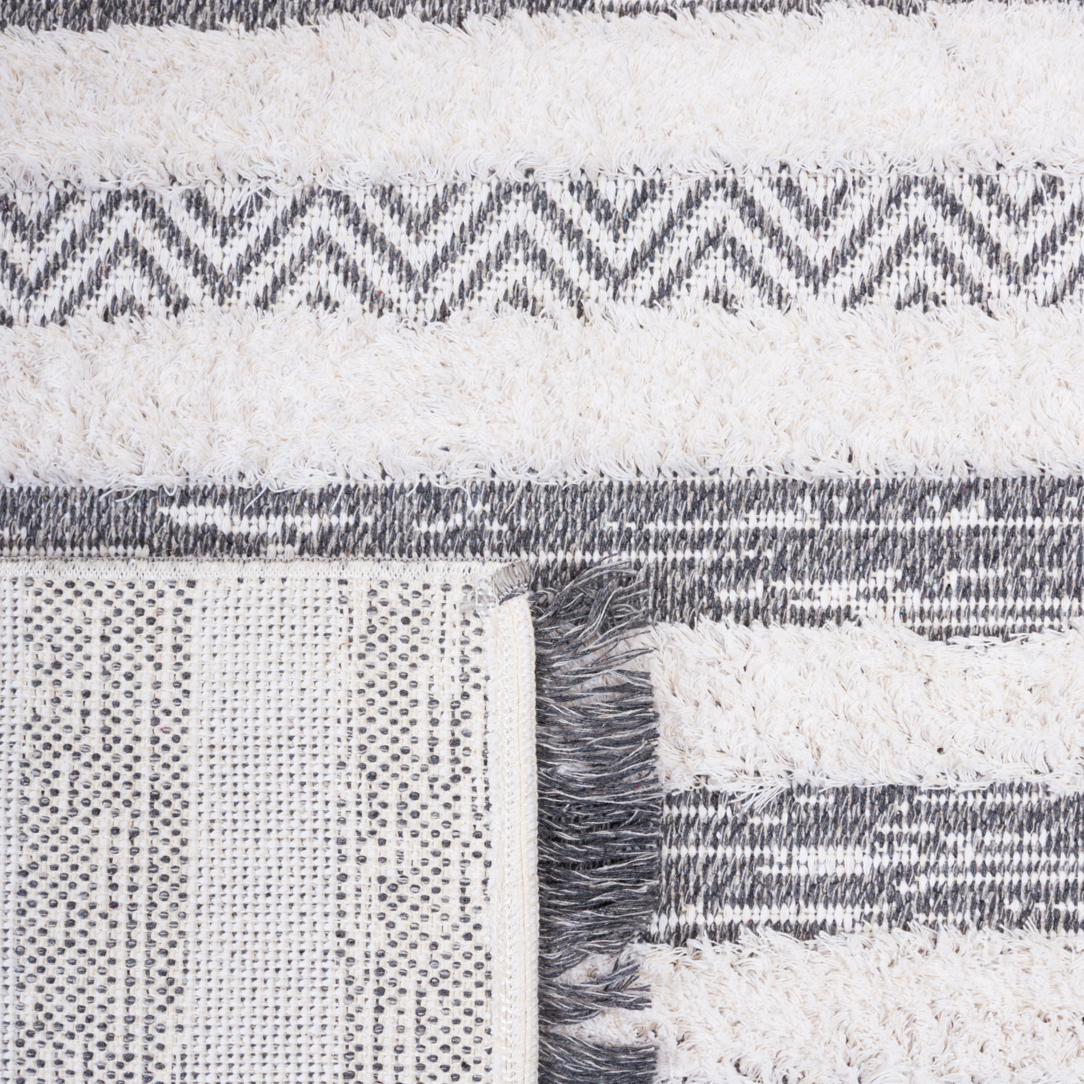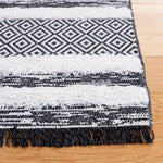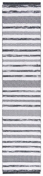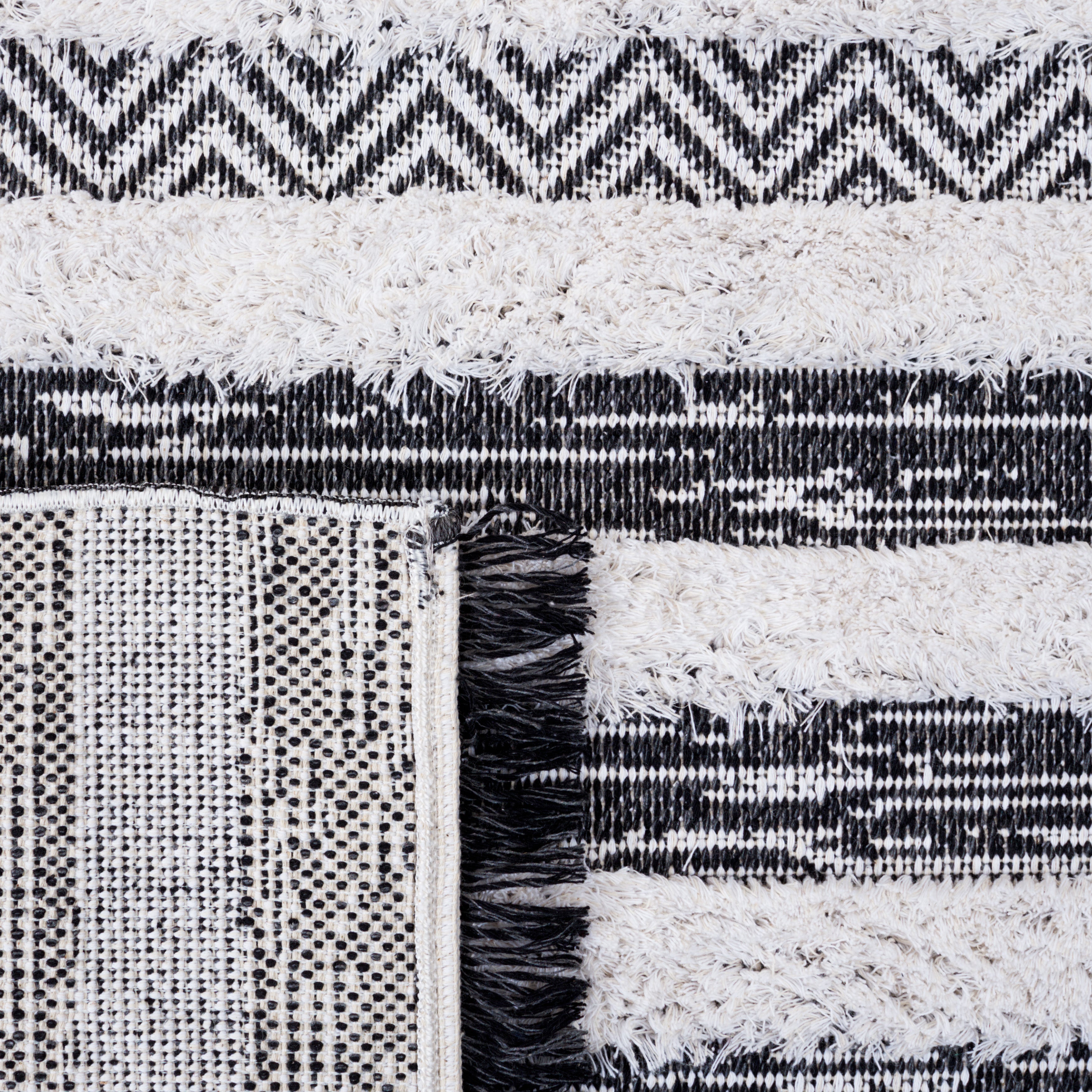 Elevate your home with this stylish 2' x 9' runner area rug, featuring a striking black and ivory pattern that brings a touch of elegance to any hallway or narrow space. Constructed with precision using a power-loomed technique, this rug boasts a comfortable 5/8" pile height, perfect for high-traffic areas. Made in Turkey, this piece blends 92% recycled cotton and 8% polyester, offering both durability and eco-friendliness. The chic design showcases tribal-inspired motifs, adding an artistic and contemporary flair to your decor. Not only is this rug aesthetically pleasing, but it's also OEKO-TEX certified, ensuring that it's free from harmful substances. Add a sense of sophistication and commitment to sustainability with this beautiful runner rug.