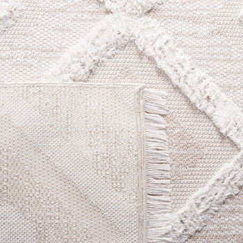 Elevate your space with our exquisite 2' x 9' Beige/Ivory Runner Rug, featuring a captivating geometric pattern that harmoniously blends modern design with classic style. This power-loomed masterpiece is sustainably constructed with 92% recycled cotton and 8% polyester, ensuring a luxurious yet durable texture with a comfortable 5/8" pile height. Each rug radiates artisanal charm, imbued with tones that effortlessly complement a wide range of interiors.