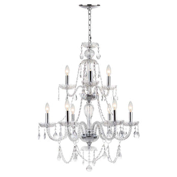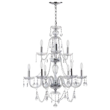 Inspired by regal chandeliers that illuminate Austria's magnificent Sch?nbrunn Palace, this traditional chandelier is a modern heirloom. Two tiers of glistening crystals and teardrop pendants create a dramatic interplay of light and shadow.