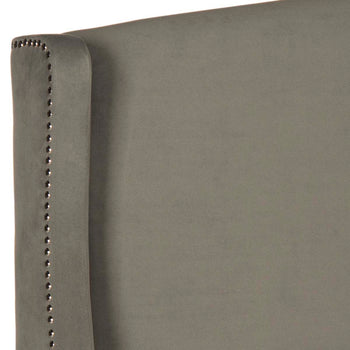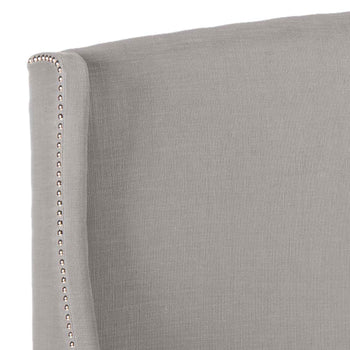 Inspired by the modern home of Milan's most sought after interior designer, clean lines and a graceful disposition make this winged headboard a modern classic. Its neutral palette finished with silver nailheads creates the aura of instant luxury.