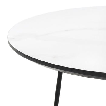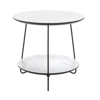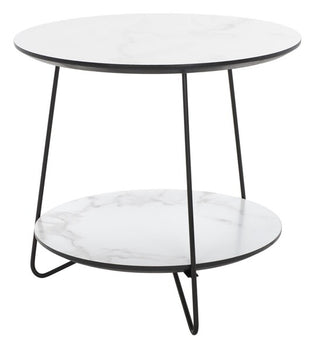 This Avani Side Table makes a Mid-Century chic statement in any Decor, making it a favorite of modern designers. Showcasing a touch of contemporary glamour with its two tiers in sleek (faux) white marble finishes, Avani's hairpin legs emanate a dynamic sense of depth.
