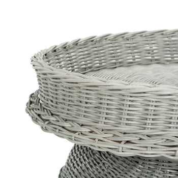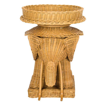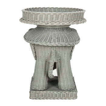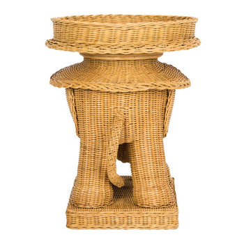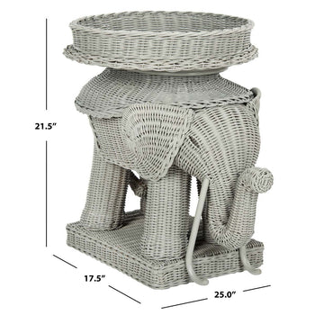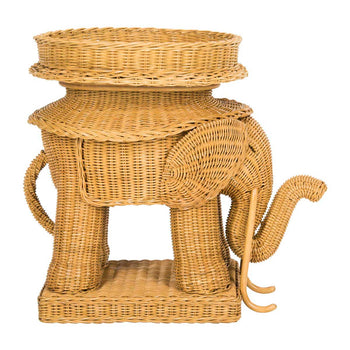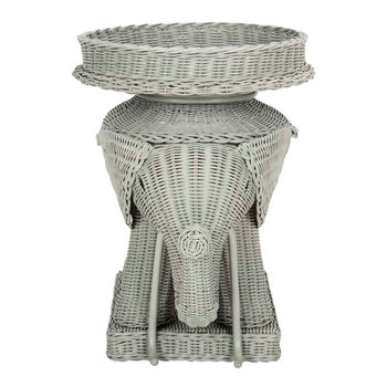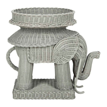 Inspired by fivestar safari hotel interiors, this elephant rattan side table with tray instantly inspires the lost art of conversation. At home in any living room, its eclectic shape features a grey modern finish. Designers love the builtin tray.