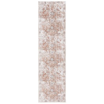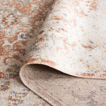 The color palette is a sophisticated mix of ivory and rust hues, intertwined in a visually captivating pattern that speaks to both traditional and contemporary aesthetics. Its design showcases faded motifs and a delicate distressing effect, echoing the feel of a cherished heirloom while remaining firmly grounded in modern sensibilities.