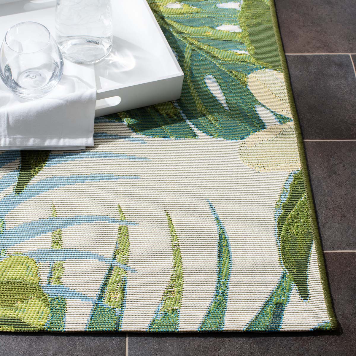 | Care Notes | Indoor-outdoor rugs are made with durable synthetic materials to help them to withstand high traffic and natural weather elements. Outdoor rugs can be cleaned with a bit more vigor, such as rinsing a rug with a garden hose to remove excessive grime. Dry indoor-outdoor rugs over a railing in the sunlight on both sides instead of placing it on a wooden deck or stone patio. |