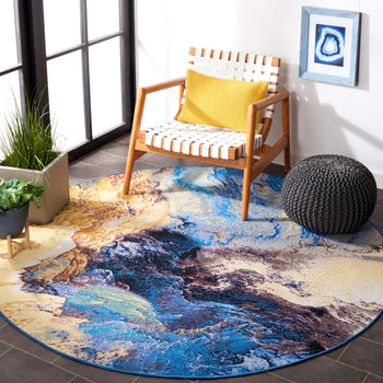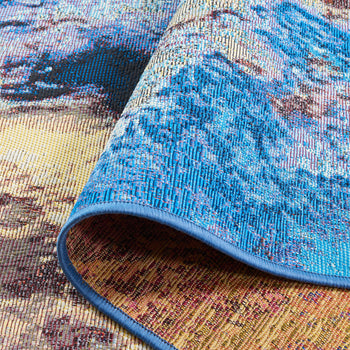 Elevate your living space with our exquisite Power Loomed Area Rug, a perfect blend of artistry and durability. Crafted in the historic textile workshops of Egypt, this rug is a testament to superior craftsmanship and design. Its aesthetic captures the beauty of a fluid, abstract landscape where mesmerizing blues intertwine with rustic gold tones, creating a spectacular visual feast for your floors.