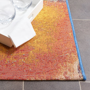 The rug's low-profile 1/4" pile height is thoughtfully constructed from a robust blend of 76% Polypropylene and 23% Polyester, with 1% of the backing material ensuring stability and endurance. This expertly woven combination provides a lush feel underfoot while promising longevity and ease of maintenance, making it an ideal choice for both indoor and outdoor settings.