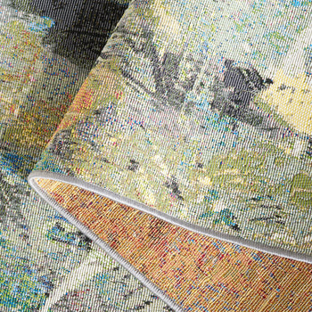 Whether placed in a high-traffic living room or under the dining table, this Power Loomed treasure promises ease of maintenance without compromising on style. The unique pattern as seen in the image is versatile and will carry the visual interest of the room, becoming a focal point that invites conversation and admiration.