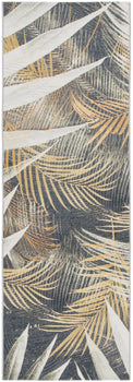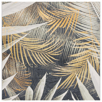 Proudly made in Egypt, this rug is a testament to exceptional craftsmanship and a tradition of quality. The design showcases a luxurious tropical pattern, with intricate palm fronds artfully arranged across the rug. These botanical motifs bring a touch of nature's serenity into your space, harmonizing with contemporary or classic aesthetics alike.