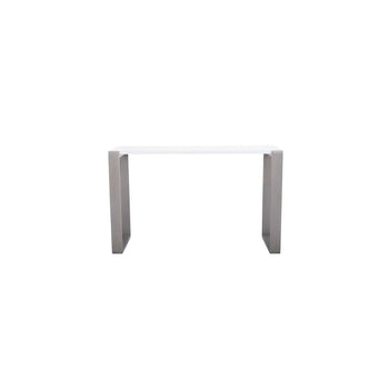 Rugged meets refined in the contemporary Bartholomew console table with white lacquer top and chunky wood grained base in a chic dark brown finish. Whether set in a penthouse or loft, this dramatic console will command attention in a living room or hall.