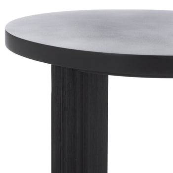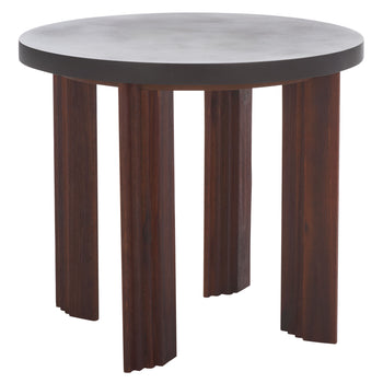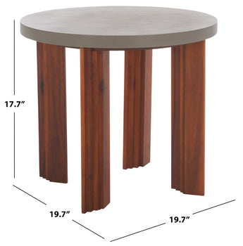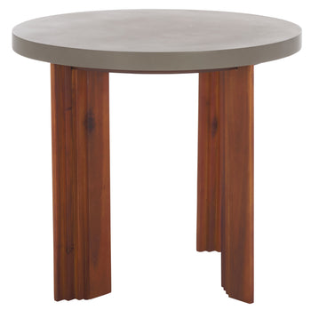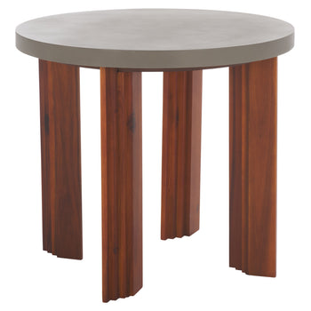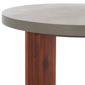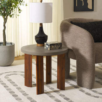 Bring elevated charm and elegance to your home with our Basilio accent table. Our handmade table packs a dose of character and charm within its sleek and minimalistic design. Its thick, round tabletop offers a touch of elegance with a beautiful grey finish. Wooden panels are artfully arranged to add drama and texture to the acacia wood legs. Both rustic and modern, our accent table can add rich dimension and interest to your favorite sofa or armchair. It can create a stunning display of your decor items while keeping essentials within arm's reach.