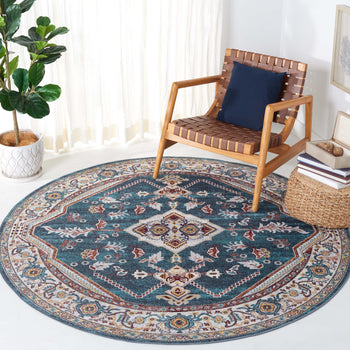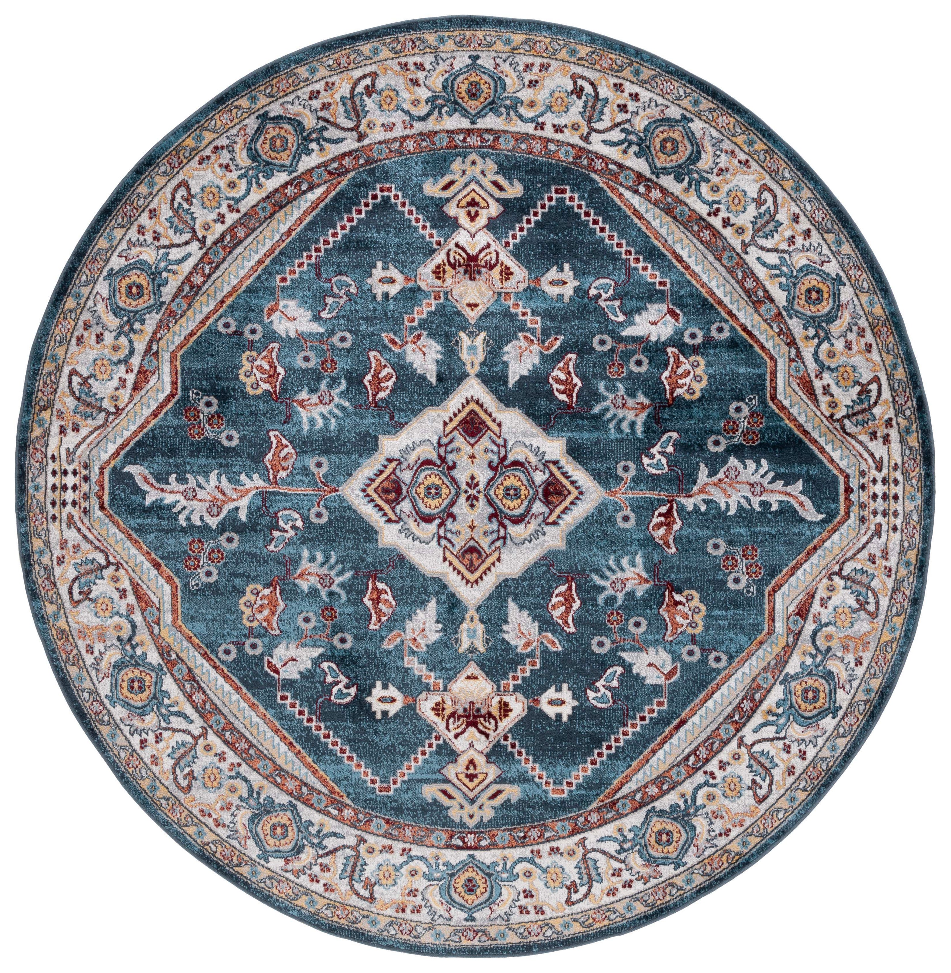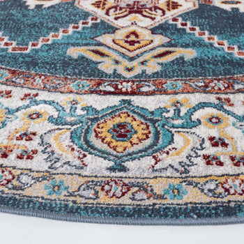 Elevate your home decor with this exquisite 6'-7" x 6'-7" Round area rug, masterfully crafted in the heart of Turkey. This traditional-style piece embodies timeless elegance with its intricate patterns and a harmonious blend of blue and grey tones, bringing a serene and sophisticated atmosphere to any space.