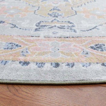 Enhance the elegance of your living space with our meticulously crafted 4' x 6' Sage/Gold area rug, a harmonious blend of traditional charm and modern versatility. This small rectangle rug boasts a low-profile height of 1/8", making it an ideal addition for areas that require a sleek, unobtrusive floor covering.