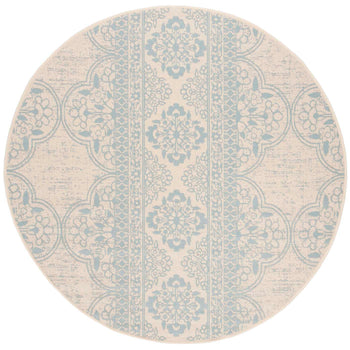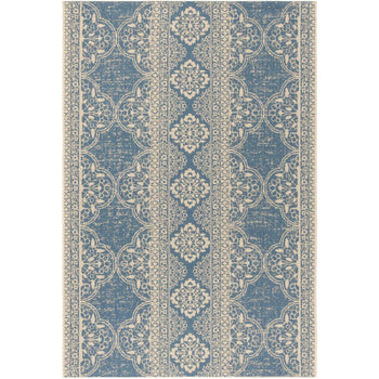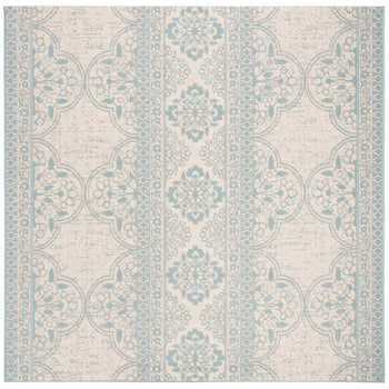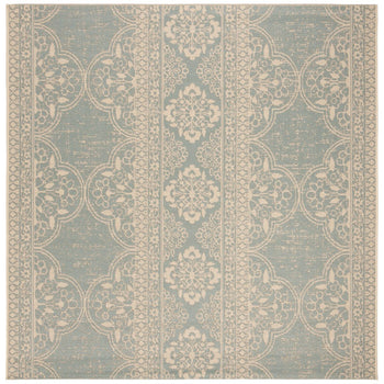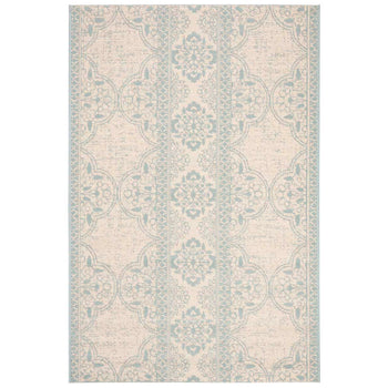 Introducing our exquisite accent area rug, a lovely addition to both indoor and outdoor settings, fashioned in the serene shades of aqua and cream. Measuring a versatile 2'-2" X 4' and crafted with a low-profile 1/4" pile height, this piece offers both comfort and ease of maintenance.