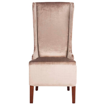The Becall Dining Chair with sleek finish commands attention in any space. With a reaching, slightly tapered backrest and sloping arms, the dramatic Bacall is all about smart sophistication and luxurious comfort.