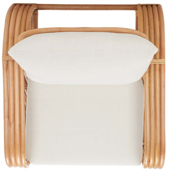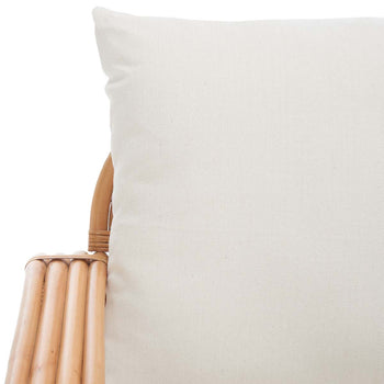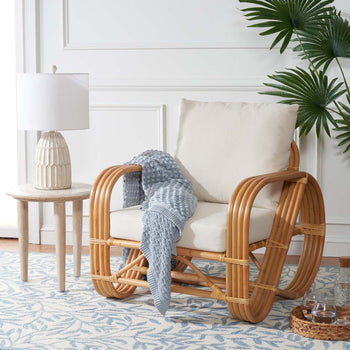 A British Colonial classic is reimagined for today's coastal interiors in this beautiful Beia Accent Chair. The visually engaging frame of its organically curved natural rattan brings a breezy ambiance to any room, and plush white cotton-blend cushions ensure all the luxury of a tropical resort.