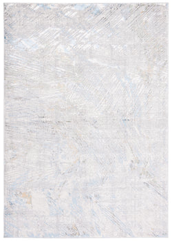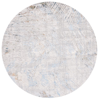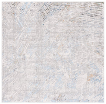 Dressed in an elegant grey and blue palette, the rug's pattern?evident from the image?features an artistic blend of abstract brush strokes that evoke modern artistry. Its cool hues are versatile, providing a serene backdrop for various home decors while adding a subtle splash of color to enliven the setting.