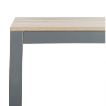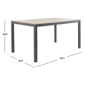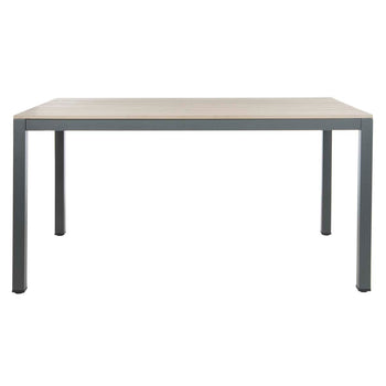 Bring minimalism to your outdoor decor with this smart and stylish dining table. Its grey frame and distressed taupe wood panels create a neutral palette, while its clean lines make it a perfect in any transitional outdoor entertaining space.