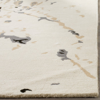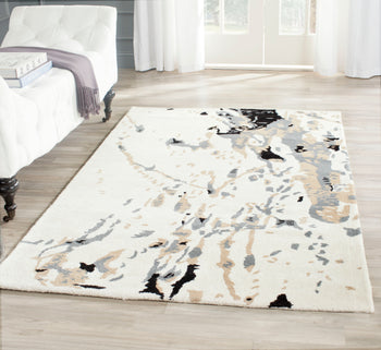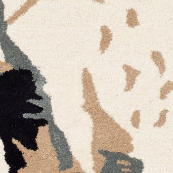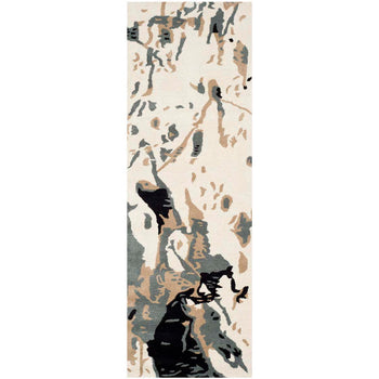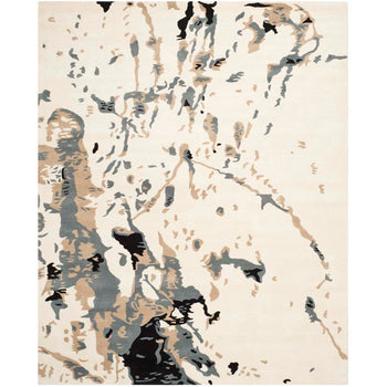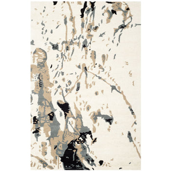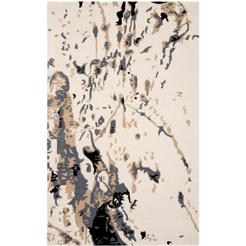 Introduce a touch of elegance and sophistication to your home with our handcrafted accent rug, sized perfectly at 2 feet by 3 feet to fit a variety of spaces. This exquisite piece boasts a palette of serene ivory and refined grey, with a subtle pattern that draws inspiration from organic forms and abstract artistry, as seen in the image provided.