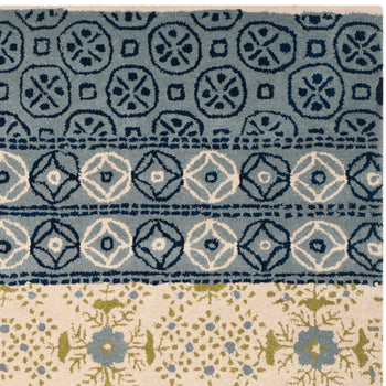 Expertly hand-tufted from the finest wool, this rug boasts durability and a soft texture that you can feel beneath your feet. The color palette of ivory and blue creates a serene atmosphere, while the traditional design brings a classic and sophisticated look to your decor.
