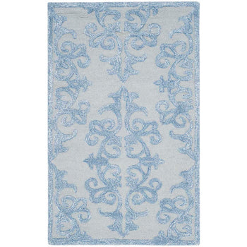 Elevate your space with the timeless elegance of our hand-tufted accent rug. Crafted with meticulous attention to detail, this 2' X 3' area rug boasts a plush 3/8" pile height that invites you to step onto luxury. The stunning blue palette is beautifully showcased in the intricate damask pattern, a design that harkens back to classic stylings with a modern twist.