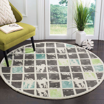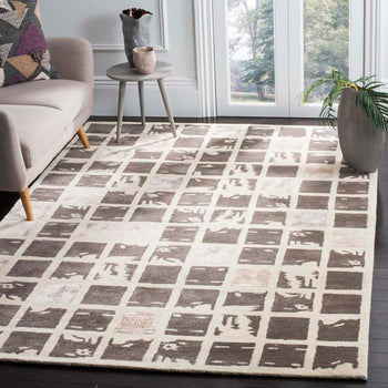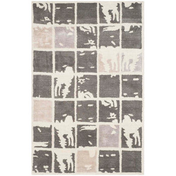 Discover the perfect complement to your home with our luxurious hand-tufted wool area rug, expertly crafted in India. This accent piece, sized at 2' X 3' and featuring a pile height of 3/8", combines timeless style with contemporary design. The elegant grey and ivory hues blend seamlessly with a variety of decors, while the unique pattern featured in the image ? a playful and abstract assortment of whimsical shapes and blocks ? adds an artistic touch to your space.