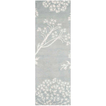 Introducing our charming accent rug, a versatile piece that brings a touch of elegance and warmth to any space. This exquisite 2'-6" x 4' area rug showcases a delicate light blue and ivory color palette, complemented by a sophisticated botanical pattern exuding a timeless appeal. Each design element intertwines harmoniously, emanating serenity and refined taste.