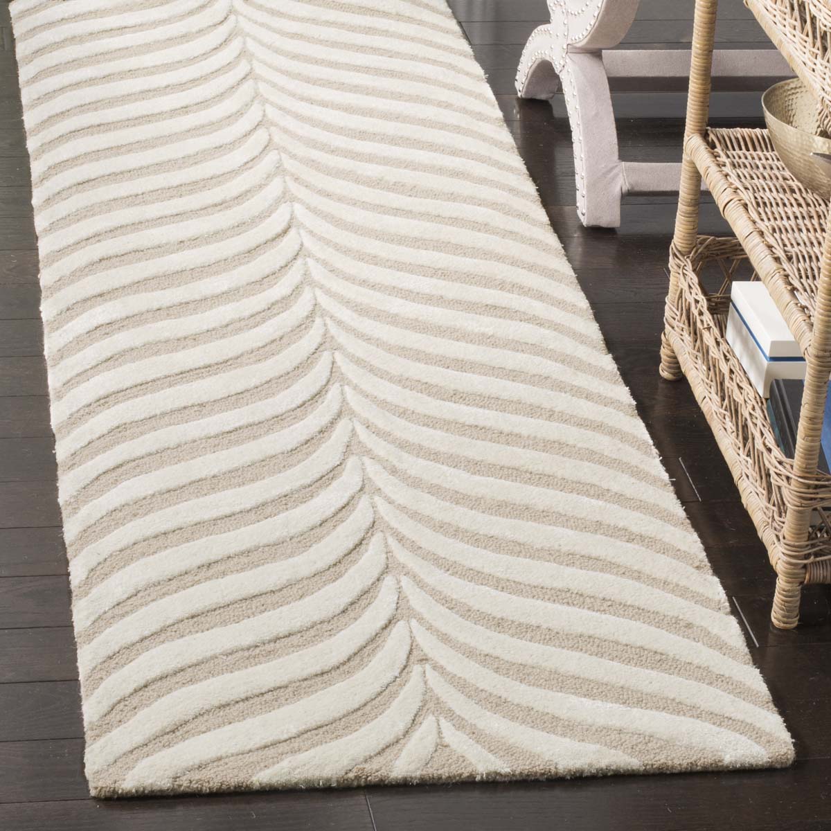 Constructed from the finest wool, this rug offers both durability and a soft, inviting texture underfoot. Ideal for adding a touch of elegance to smaller spaces, its ivory and grey color palette infuses a sense of calm and sophistication into your room's decor.