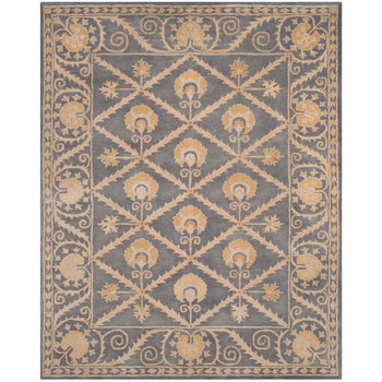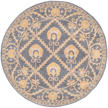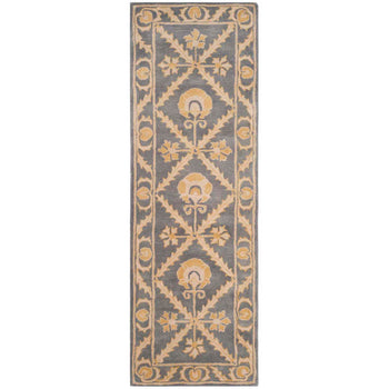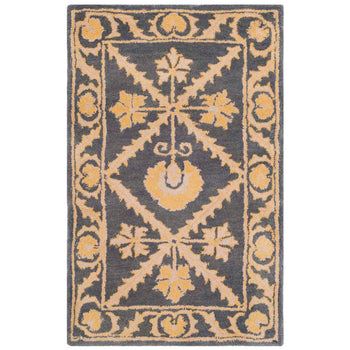 The beautiful blue and gold color palette of this rug creates a striking contrast that will enhance any decor. Its design draws inspiration from traditional motifs, giving it a timeless appearance that's sure to impress.