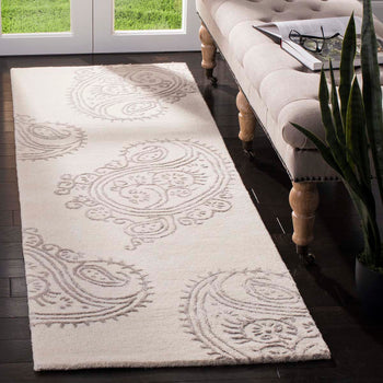 The intricate pattern of this area rug reveals a charming array of paisley-inspired motifs that gracefully dance across its surface. The hand-tufted construction speaks of artisanal quality and attention to detail, ensuring that each rug is both durable and stylish.