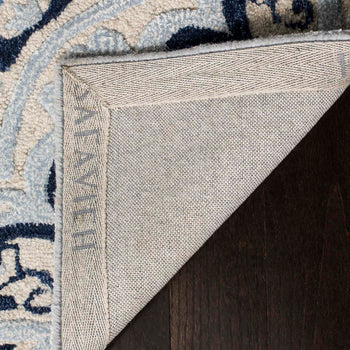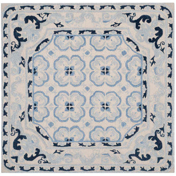 Featuring a harmonious blend of ivory and blue hues, this rug is adorned with a traditional pattern that exudes a classic charm. Its intricate design showcases symmetric floral motifs bordered by delicate scrolls, lending an air of enchantment to your interior d?cor.