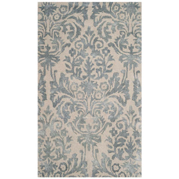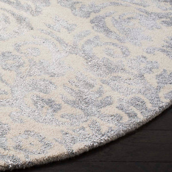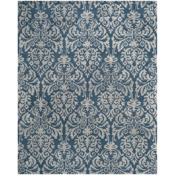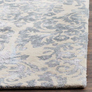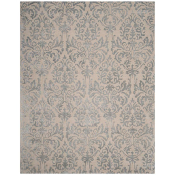 This rug flaunts a sophisticated design, featuring a classic motif with intricate detailing that exudes a sense of luxury and refined taste. The understated silver patterns on a soft ivory background make this rug a versatile piece that can seamlessly integrate into both contemporary and traditional settings.