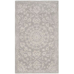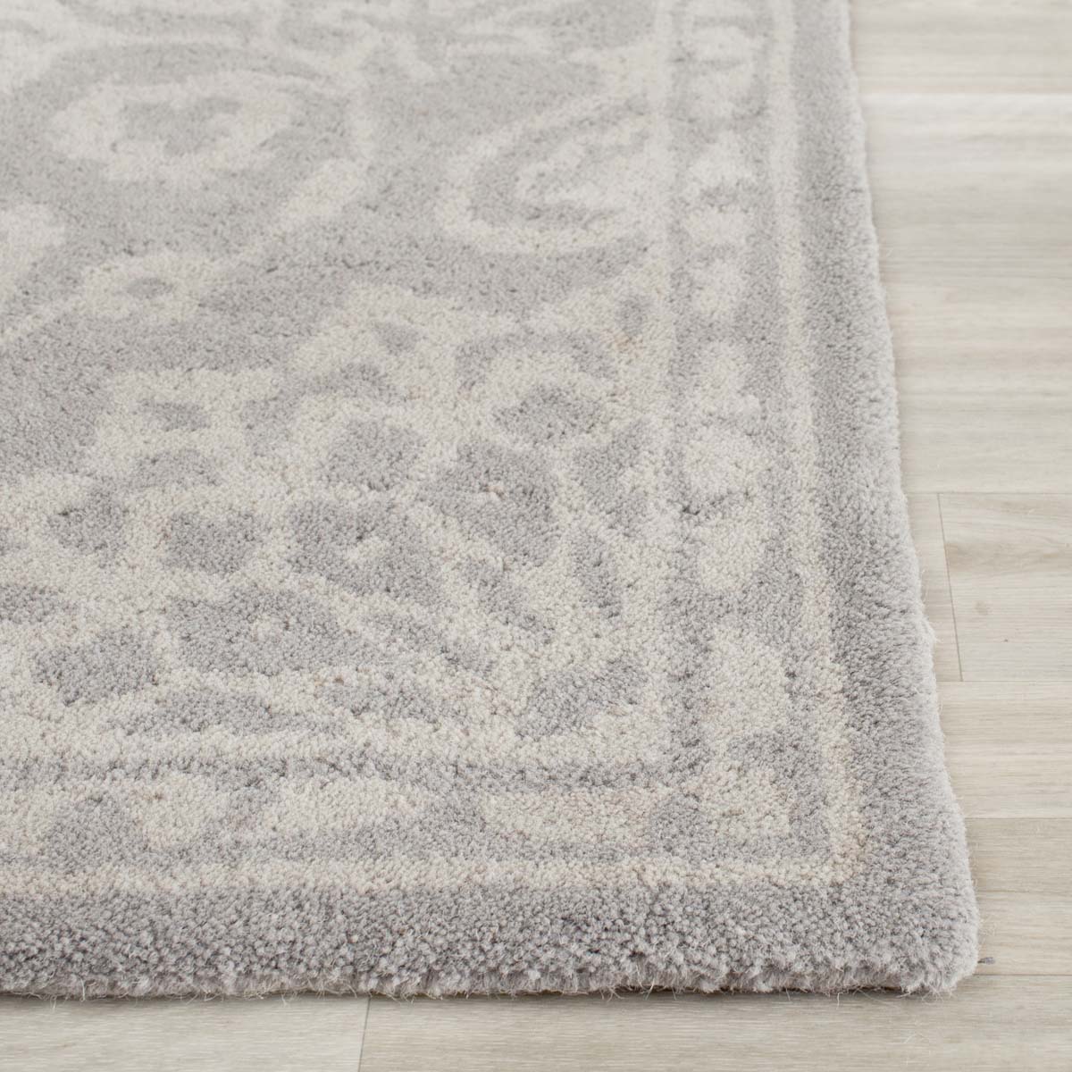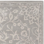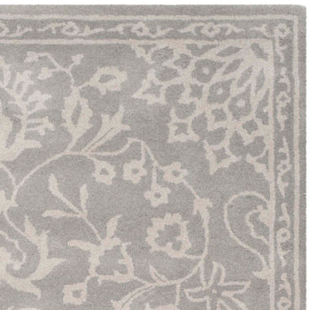 Boasting a sophisticated palette of grey and silver, this rug seamlessly blends with any decor while adding a touch of refined grace. The delicate wool fibers are tufted by hand to create a dense, textured surface that is both durable and comforting.