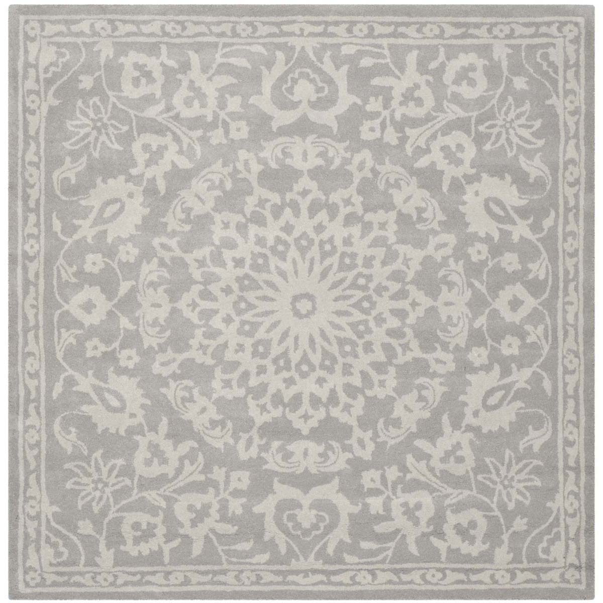 The central medallion pattern, framed by intricate borders, draws inspiration from classical motifs, showcasing an array of floral and vine elements that exude a serene and inviting atmosphere. The symmetrical arrangement of the design exudes balance and harmony, making it a stunning focal point in any room.