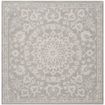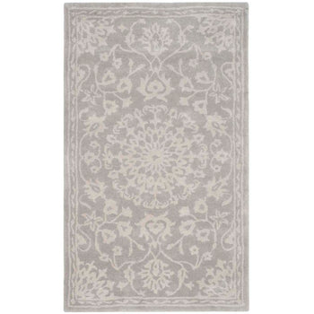 Boasting a sophisticated palette of grey and silver, this rug seamlessly blends with any decor while adding a touch of refined grace. The delicate wool fibers are tufted by hand to create a dense, textured surface that is both durable and comforting.