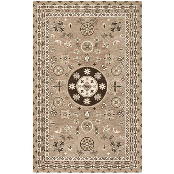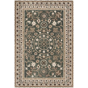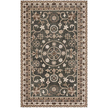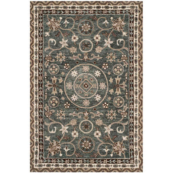 Our accent rug features a plush 1/2" pile height that offers a luxurious underfoot experience. The meticulous hand-tufted construction ensures long-lasting durability and adds a touch of artisanal quality to your home decor. The detailed pattern that graces this rug showcases a harmonious arrangement of floral and geometric motifs, bordered by intricate edging for a refined finish.