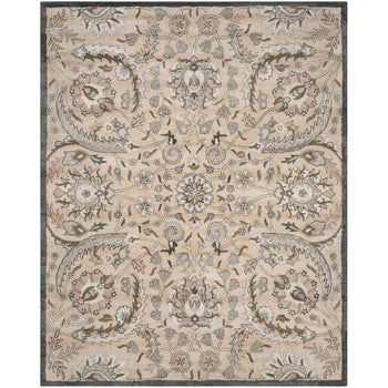 This rug showcases a timeless design, boasting intricate patterns in a harmonious blend of beige and multi-toned hues, adding a touch of sophistication and depth to any room. Its hand-tufted construction from high-quality viscose ensures a soft, plush feel and a subtle sheen that beautifully captures the light, creating an inviting ambiance.