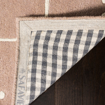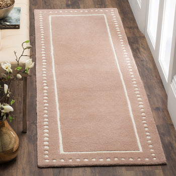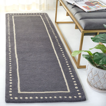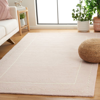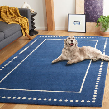 Featuring a plush pile height of 3/8", it provides the perfect combination of comfort and sophistication. The rug creates a serene and welcoming atmosphere. The appealing pattern, as depicted in the image, showcases a clean border with evenly spaced dot motifs, adding detail and interest without overwhelming the design.