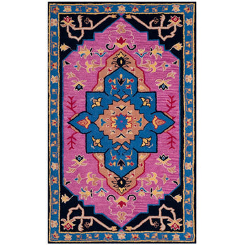 Elevate your living space with our exquisite hand-tufted wool area rug, crafted with passion and precision in India. This luxurious 2' X 3' accent rug boasts an eye-catching palette of pink with multi-colored highlights that will infuse warmth and vibrancy into any room. The rug's design features an enchanting traditional pattern, complete with intricate motifs and symmetrical floral elements that echo the timeless beauty of classic textiles.